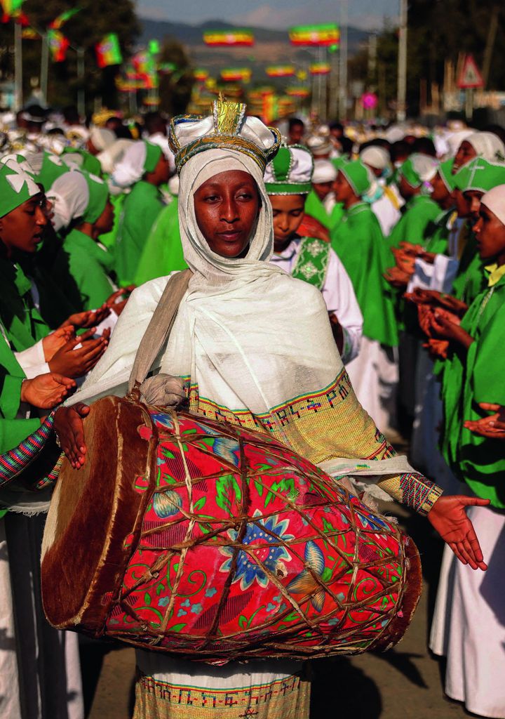 In Äthiopien ist es das höchste religiöse Fest im Jahr: Das „Timkat“ wird zum Gedenken an die Taufe Jesu und der Epiphanie, der „Erscheinung des Herrn“, zelebriert. Landesweit versammeln sich am 19. Januar äthiopisch-orthodoxe Christen, wie hier in der Hauptstadt Addis Abeba. Tausende in Weiß gekleidete Gläubige singen, tanzen und trommeln. Die Frauen tragen kunstvoll bestickte Gewänder, die Männer Kaftan und Pluderhose. Das Fest ist von der UNESCO als immaterielles Kulturerbe anerkannt.